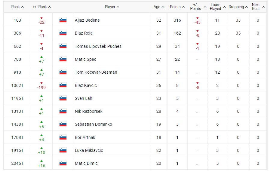 Prav tako je v rubriki “NAJ, NAJ, NAJ” možno preveriti, na katerem položaju se nahajajo vsi slovenski predstavniki, ki so uvrščeni na ATP ali WTA lestvico.