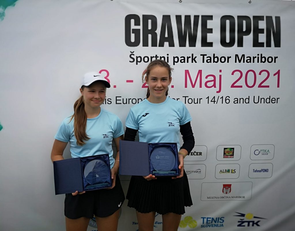 Še naprej pa na igriščih ŽTK Maribor poteka tudi Grawe Open U14. V četrtek sta polfinalno vstopnico v posamični konkurenci lovila Julija Bogatin (LUKAKP) in Paolo Angeli (ŽTKMB), a bila neuspešna. Bližje uspehu je bil Angeli, ki je prvi niz proti 8. nosilcu turnirja dobil, a nato naslednja dva izgubil. V finalu turnirja dvojic sta nastopili Nala Kovačič in Beti Butina Jazbec. Predstavnici domačega kluba sta morali priznati premoč 2.-postavljeni dvojici Fajmonova S./Kovackova A. Kljub porazu je za Nalo in Beti uspešen teden.
