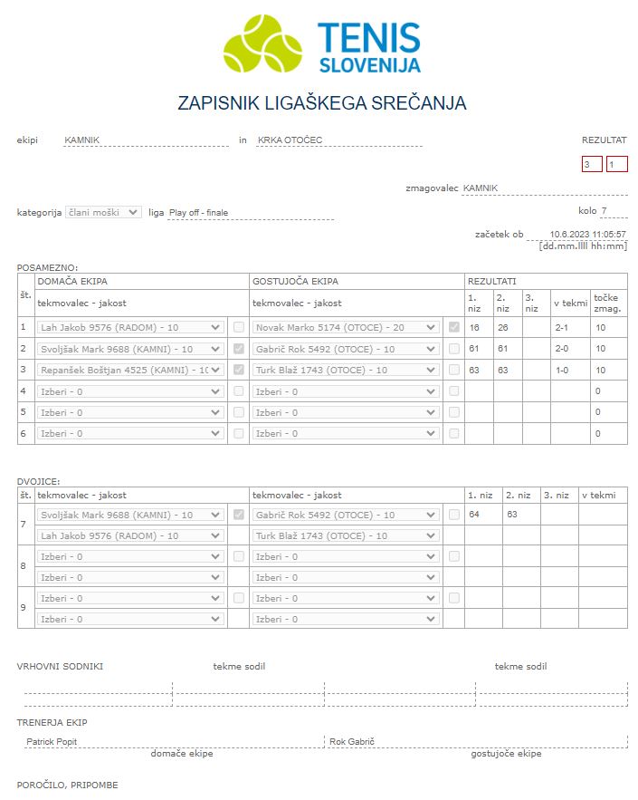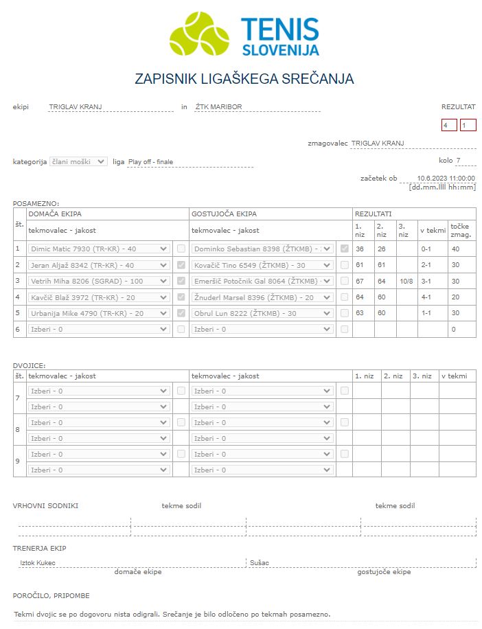 Telemach članske lige: TK Triglav Kranj znova na vrhu, med elito napredoval TK Luka Koper