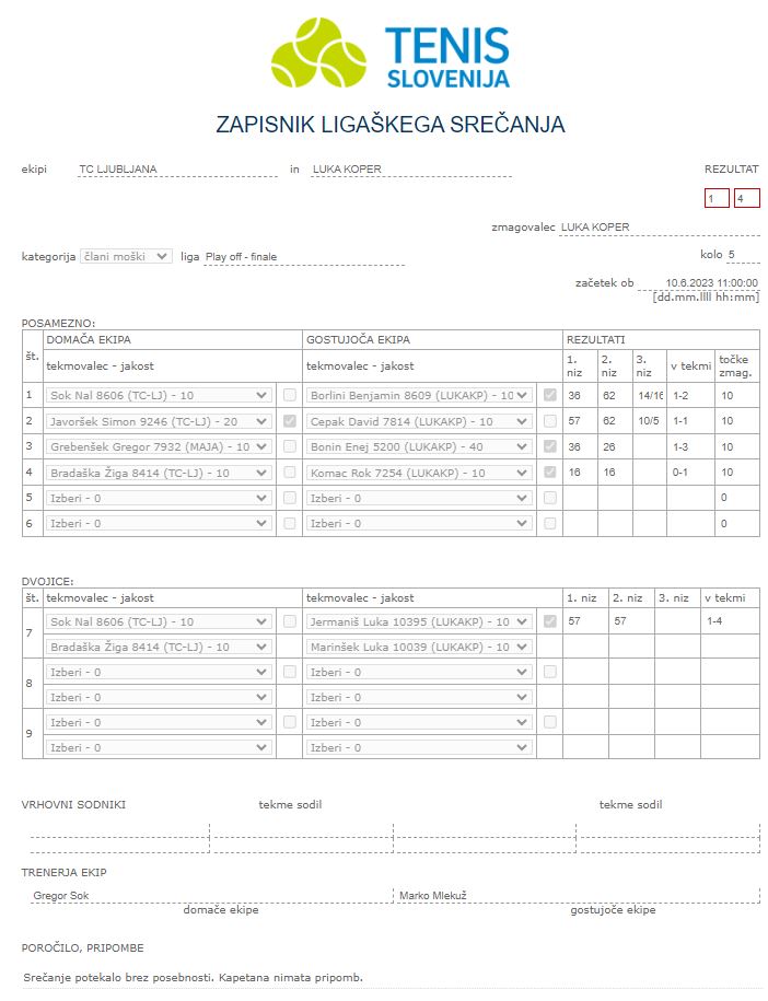 Finale: TC Ljubljana : TK Luka Koper 1:4