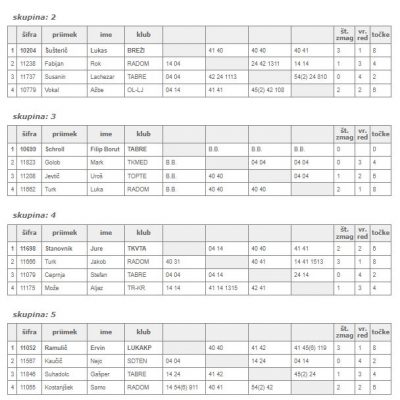 Neporaženi so ostali tudi Val Mežan, Lukas Šušterič, Luka Turk, Jakob Turk, Ervin Ramulič, Urh Sevnik, Inaja Vršič, Anja Cimperman, Maja Šubelj in Maša Šubelj na igriščih TK Olimpija, ter Mark Škundrič, Mark Lalič, Jan Fišinger, Nik Manasijević, Val Hriberšek, Naja Hat, Isa Vreže in Uma Vreže na igriščih TK Branik Maribor.